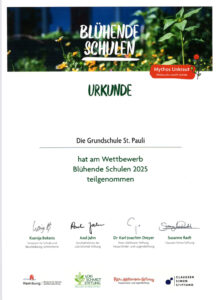Im Schuljahr 2024/2025 die Kinder des damaligen 4. Jahrgangs im Rahmen eines Pausenangebots an einem Wettbewerb teilgenommen, bei dem es um die Gestaltung der Terrasse hinter der Sporthalle ging. Wir freuen uns, dass unser Schulhof immer grüner wird!